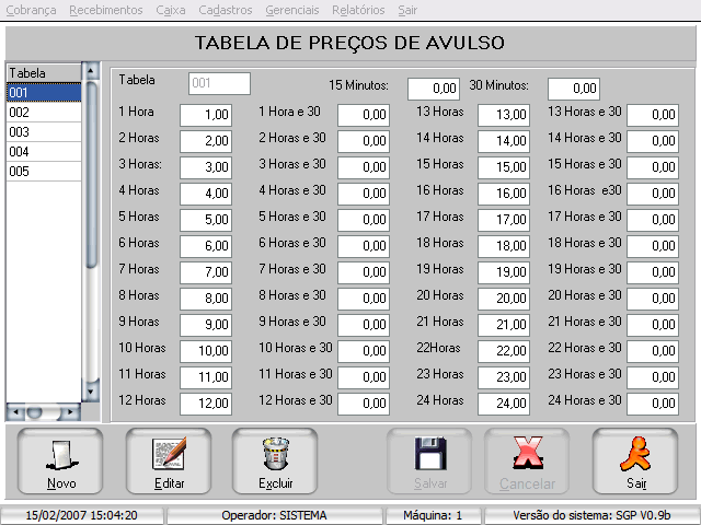 completas (placa, modelo, hora/data de entrada e saída, tempo